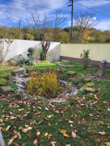 A kert füvesített, körbe van kerítve.