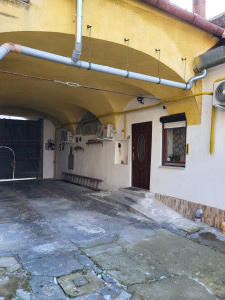 Az udvarrész félig betonozott, fedett, autóval be lehet parkolni.
